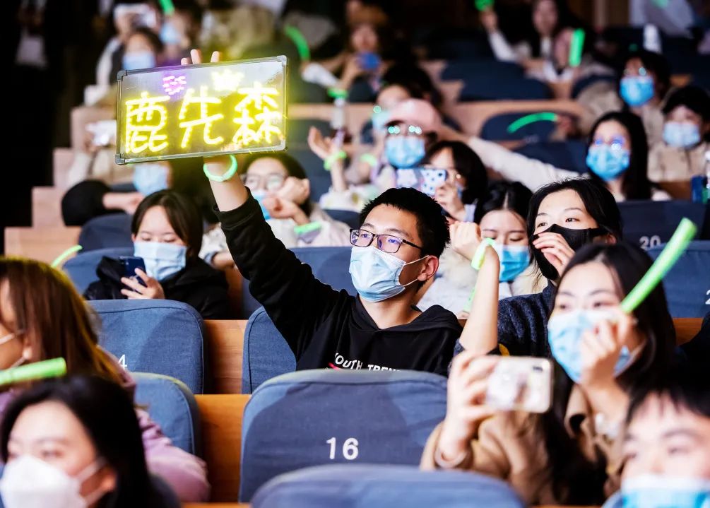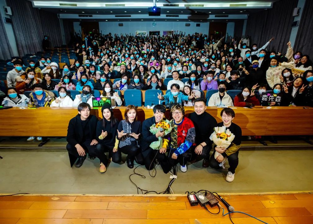 精彩有趣的分享会过后,本次破界论坛终于来到了同学们最期待的现场演唱环节。当敬文讲堂里的灯光熄灭,星星点点的荧光、多彩的灯牌将现场氛围感拉满。不插电的现场演唱从《你不喜欢海却喜欢山》开始,在《一起跳只舞》的欢快节奏中被推向高潮。《再唱一次这首歌好吗?》用韵律把我们真正带入到鹿先森的世界中,而一首《华年》让我们沉醉在青春易逝的感触里,最后,这场不插电现场演唱在充满鲜花、掌声与不舍的大合唱《春风十里》中结束。这场听觉盛宴,温暖了北师的冬夜。