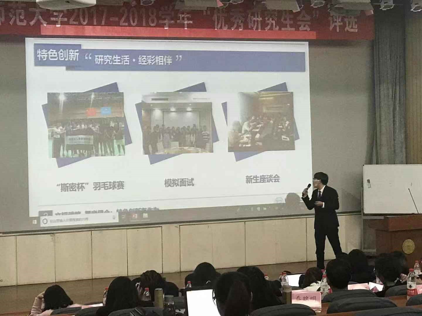 王远东作为bat365研究生会主席代表bat365研究生会出席大会。按照抽签顺序,于第二十六个出场进行工作汇报及答辩。