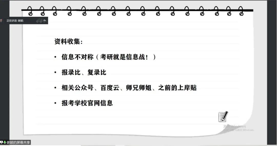 第三位向大家分享的是18级会计专业的谢颖,她成功上岸了bat365中文官方网站会计学专业硕士。她详细地分享了会计学专硕初试、复试各个科目的备考经验。她认为考研就是信息战,同学们需要充分利用身边以及网上的信息资源。她建议同学们用好微信公众号、微博、百度云等平台,最好能够找到直系的师兄师姐询问有关题目和相关经验,减弱信息不对称产生的影响。