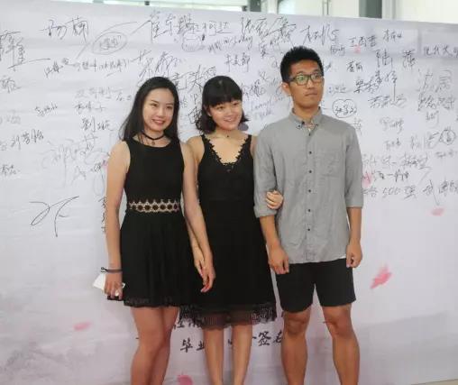 踏上红毯走进学生活动中心,迎面就是签名板。毕业生们在上面留下一个个充满活力和希望的名字,和好友合影留念,带着一路的欢声笑语走进大厅。