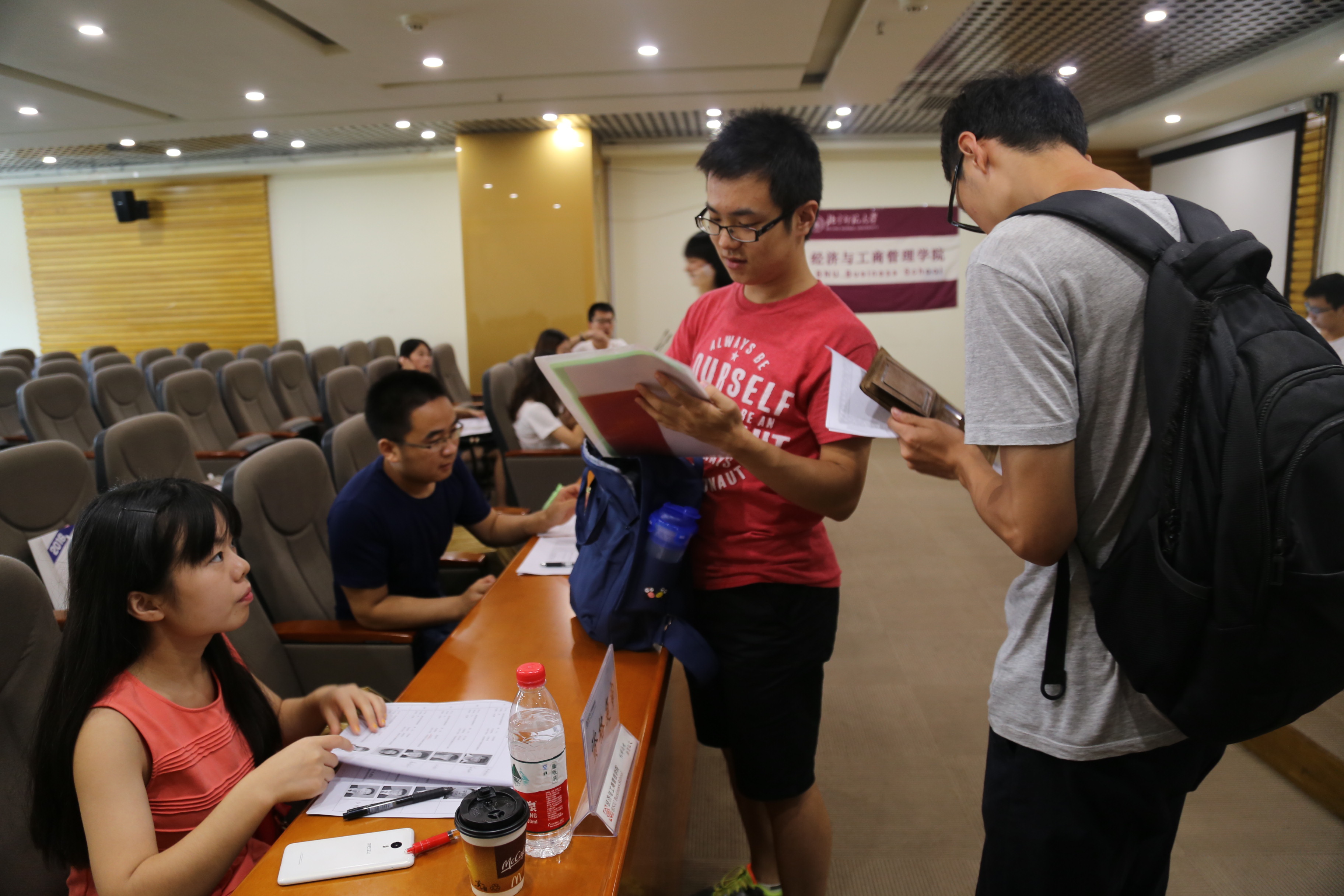 研究生新生报到注册地点设在京师大厦4层9406。经过充分的准备工作,9月4日早上6:30,院研究生会工作人员便早早到来,开始布置报到会场并整装待发。大约7点钟,便有新生陆陆续续来到现场,迎新工作人员热情的接待每一位到来的新生,在有条不紊的工作中带领新生完成了报到的所有流程。同时,学院分党委副书记葛玉良老师、分团委书记张璇老师、2016级硕士班班主任朱松老师也亲临现场,了解迎新情况,解答新生的困惑和问题。