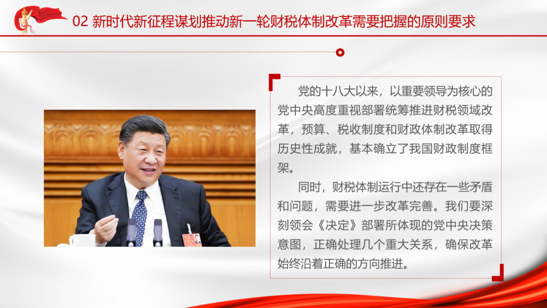 首先,王婧涵围绕党的二十届三中全会审议通过的《中共中央关于进一步全面深化改革、推进中国式现代化的决定》(以下简称《决定》)中关于深化财税体制改革部分的内容进行领学,深入阐述了深化财税体制改革在推进中国式现代化伟大征程中的重要意义,详细介绍了新时代新征程谋划推动新一轮财税体制改革需要把握的原则要求,解释说明了贯彻落实深化财税体制改革部署和我国财政制度的重点任务。《决定》深刻总结改革开放以来特别是新时代全面深化改革的成功实践和宝贵经验,提出了一系列战略性、前瞻性、开创性的重大举措,擘画了进一步全面深化改革的战略蓝图。