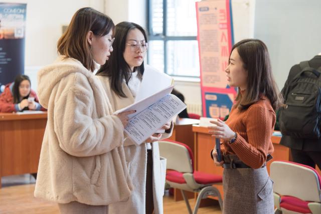 据悉,本次招聘会参会单位共有26家,涵盖范围广泛,包括咨询、投资、科技、金融、互联网等行业,给予了到场同学非常大的选择空间。其中不少知名企业到场,如科大讯飞股份有限公司、伊利集团、当当网;如中国电子科技集团有限公司发展战略研究中心、北京市西城区常青藤可持续发展研究所等不少研究单位也参与了招聘。