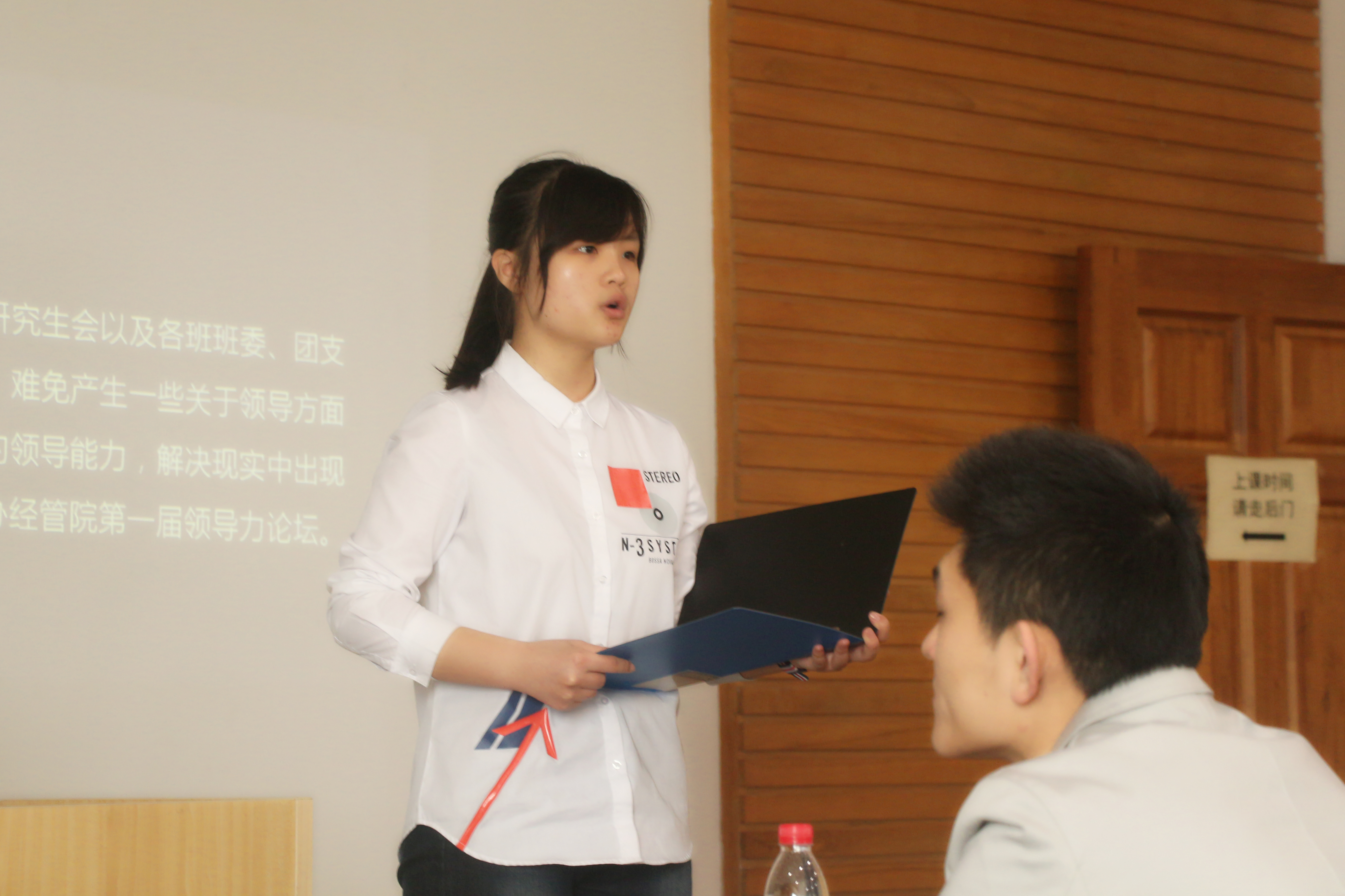 2017年3月19日早上9点,由经管学院学生会人事部主办的“成于明思,止于至善”第一届领导力论坛在后主楼1620准时开始。主持人先对全体与会同学及嘉宾表达欢迎,随后正式宣布论坛开始。