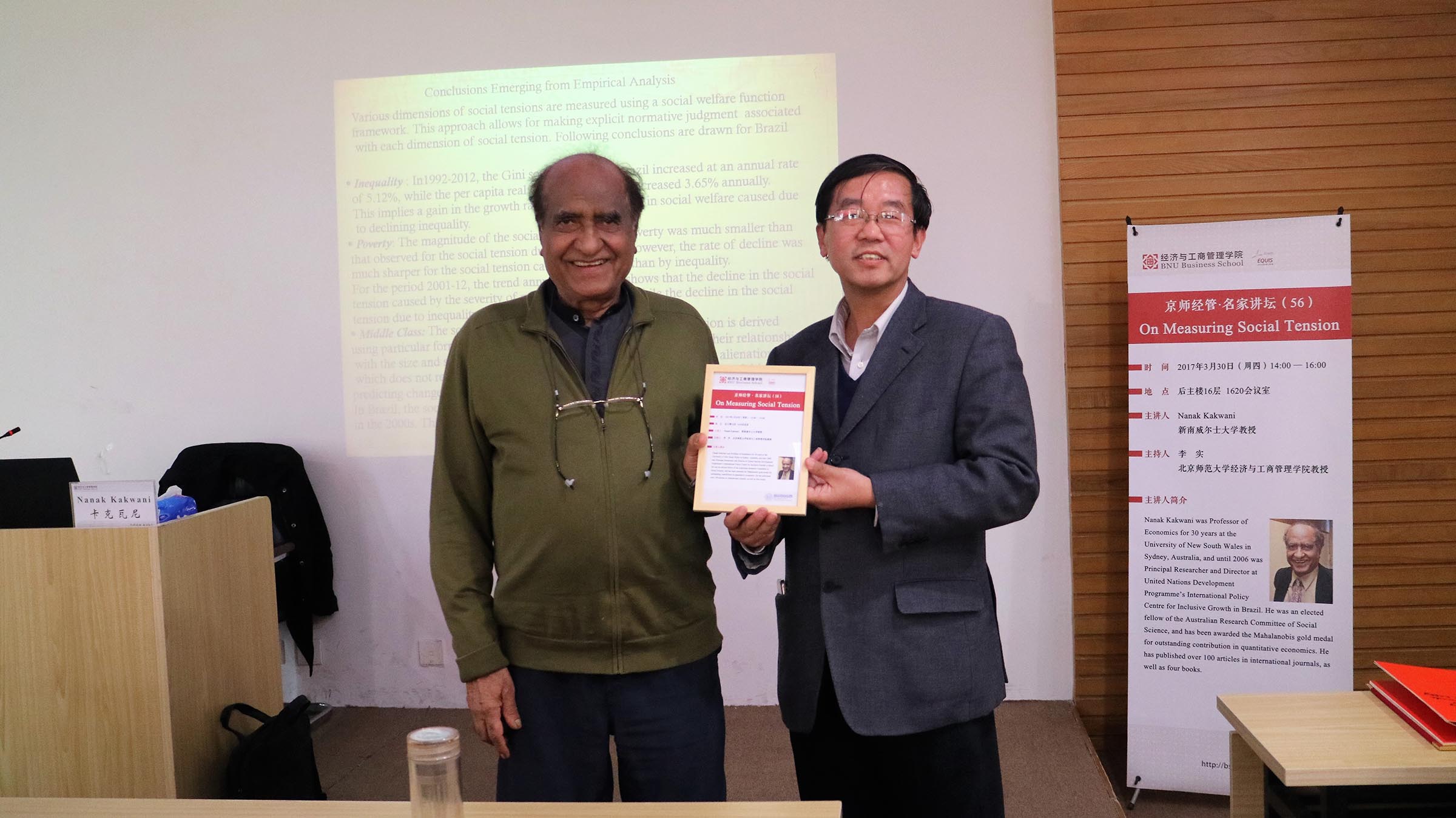 2017年3月30日下午,由bat365中文官方网站研究生会主办的第56期京师经管名家讲坛成功举行。本次讲座邀请到澳大利亚新南威尔士大学Nanak Kakwani教授带来主题为“Measuring Social Tension---衡量社会紧张感”的演讲,讲座由bat365中文官方网站李实教授主持。