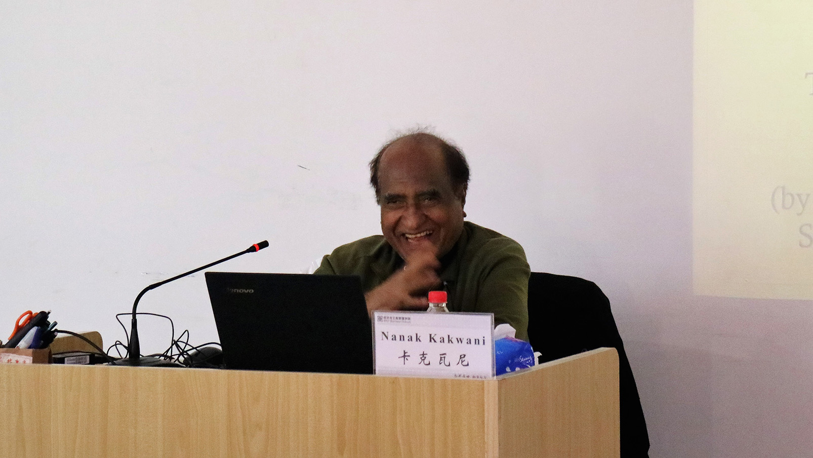 Nanak kaiwani教授在主题为“Measuring Social Tension——衡量社会紧张感”演讲中指出,在全球化战略大背景之下,减少贫困人口的同时,也使得部分行业人员失去工作,这无疑增加了社会紧张感 。Kakwani教授在演讲中从多个角度使用相对广泛应用的相应公式来量化衡量社会紧张感,如社会福利公式、收入不平等角度、引入贫困线的公式,包括社会两极分化的问题,Kakwani教授都一一作了详细解读并回答了相关问题。随后Kakwani教授提到了一个个社会热点话题---中产阶级的规模、经济増长波动性、社会阶级流动性分别于社会紧张感的关系。详实的数据、直观的图表,更好地帮助在座师生理解了以上内容。