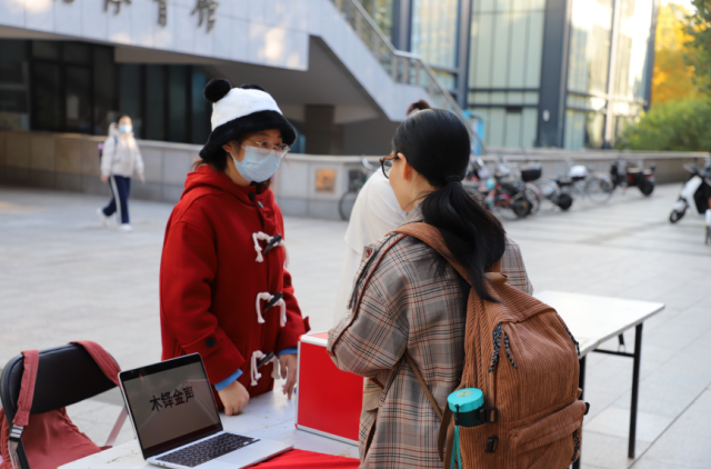 路过邱季端的同学们纷纷被热闹的活动场景所吸引,看到我们的挑战跃跃欲试。在抽到“学”字的时候,大家不约而同地想到论语“学而时习之,不亦乐乎”,而抽到“人”字的时候,大家想到的则是唯美而朦胧的“蓦然回首,那人却在灯火阑珊处”,抽到“世”字的时候,是充满力量的“世上无难事,只要肯登攀”;对于一些较难的字“弘”“范”等,我们也适当为同学们降低难度,提高大家的参与感。
