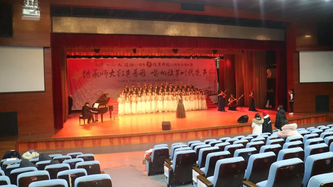 十点左右,合唱队抵达学生活动中心,大家换上盛装,开始进行第一次彩排。虽不是正式比赛,但效果却足够惊艳。曾经的那些未成熟半成熟早已蜕变,此时的他们,是最好的他们。虽然只有短短的几分钟,但大家却格外投入,努力将每一个动作做到极致,珍惜着为数不多的合唱的机会。