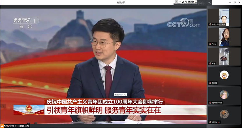 有一群人,选择在最好的年华,将青春奉献给祖国,让奋斗拼搏成为青春的底色。他们,有一个共同的名字——青年。青年如初春,青年如朝阳,青年是祖国的未来,民族的希望。2022年5月10日,时值中国共产主义青年团成立100周年,bat365中文官方网站团委和研究生会共同观看了“庆祝中国共产主义青年团成立100周年大会”的直播,回顾了中国共产主义青年团的发展历史,聆听了习近平总书记的谆谆教导,坚定了作为青年人的理想信念。