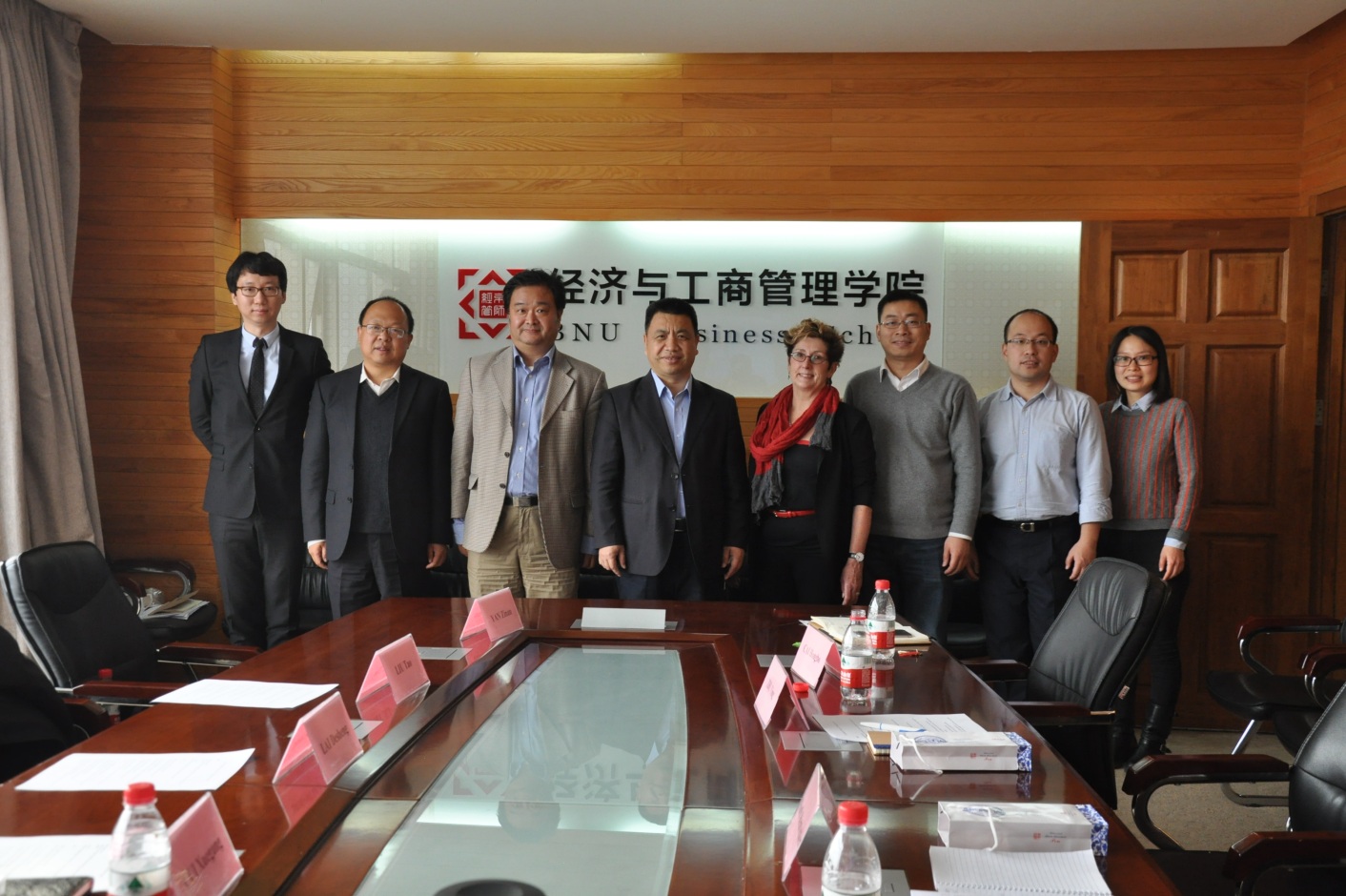 赖德胜院长对Ruth教授和ZHU Ying教授表示欢迎,他指出近两年来南澳大学商学院与bat365开展了全方位合作,在学生和教师国际交流的多个方面取得了实质性成果。刘涛副处长指出南澳大学是我校在澳大利亚的重要合作伙伴,希望两院依托学校平台深入推进国际交流与合作。Ruth表示很高兴首次来到中国的第一站是访问bat365中文官方网站,她重点阐述了澳中文化调研项目的框架和设计理念,ZHU Ying教授具体介绍了项目的实施方案和两院团队的情况。崔学刚副院长与澳方讨论了MBA文化产业管理方向国际合作办学的可行性,与会人员还就今年9月BNU-UniSA国际workshop和今年7月国际暑期学校以及合作承担国际科研项目等事宜进行了深入讨论。