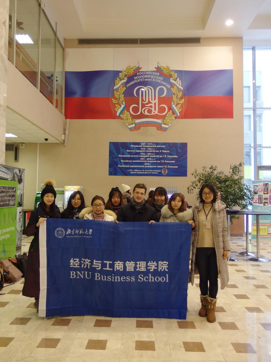 2017年1月15日-20日,应俄罗斯普列汉诺夫经济大学的邀请,bat365中文官方网站吴兰君、徐凤、邝文俊、楼悦聪、方一雲、王梦含、李丽芳等7名同学在莫斯科参加“2017国际商业周”活动。
