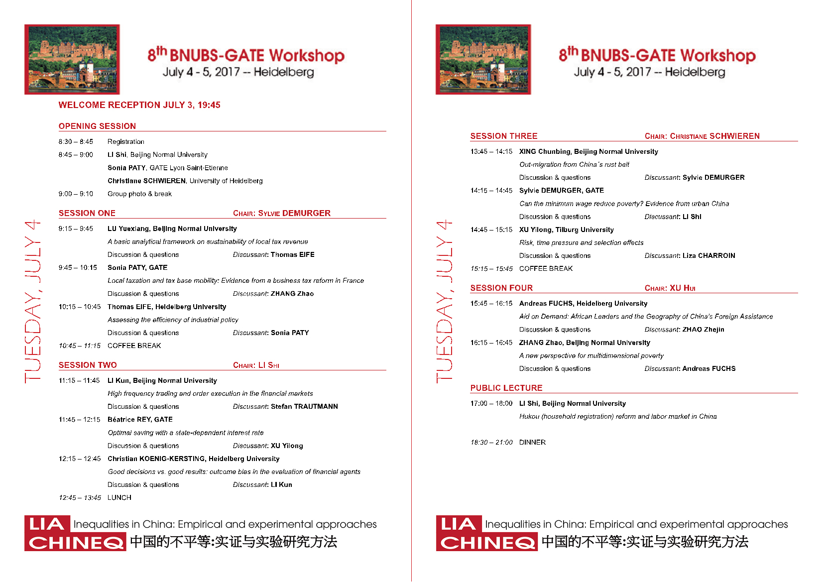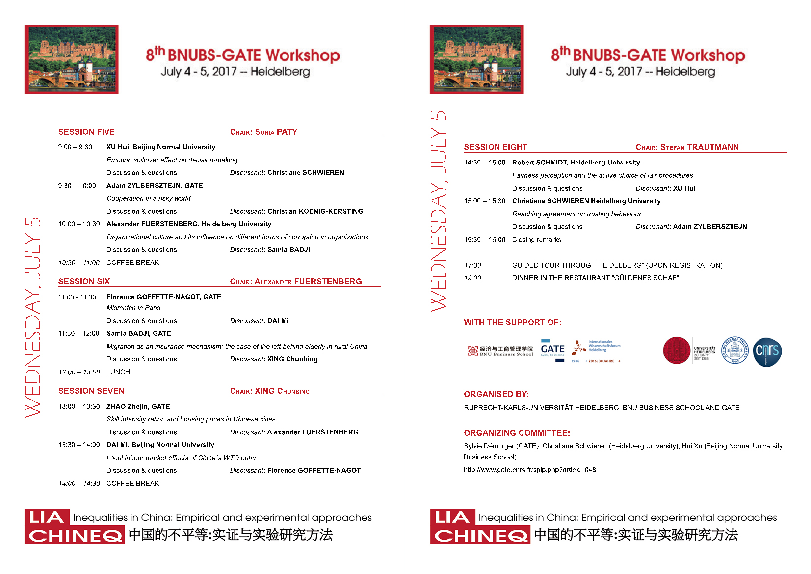 由bat365中文官方网站(BNUBS)、法国GATE经济学实验室和德国海德堡大学联合主办,德国海德堡大学承办的第八届BNUBS-GATE研讨会于2017年7月4日-5日在海德堡大学成功举行。