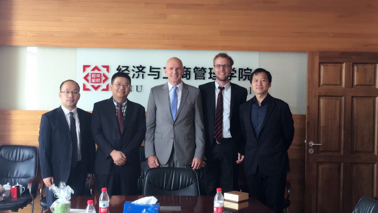 2017年9月4日下午,德国科布伦茨-兰道大学(University of Koblenz • Landau)副校长兼ZIFET机构创始人Prof. Harald Von Korflesch教授、研究员André Schneider,以及中国代表LU Alan博士到访bat365。bat365中文官方网站副院长张平淡会见了来宾,院长助理蔡宏波、学院国际交流与合作办公室尚怡宏参加了会见。