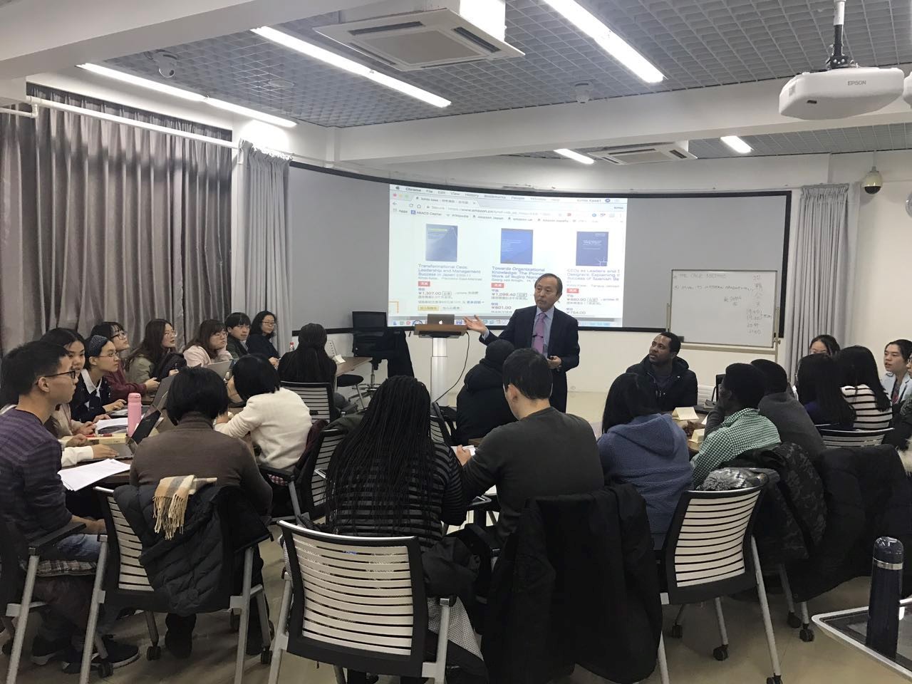 在此之前,加濑公夫教授在教七503智慧教室为bat365MBA、WEC、瀚德实验班和国际商务管理实验班等多个项目的学生举行了一场案例研讨会,bat365MBA中心主任孙川教授主持,同学们受益匪浅,现场气氛十分热烈。