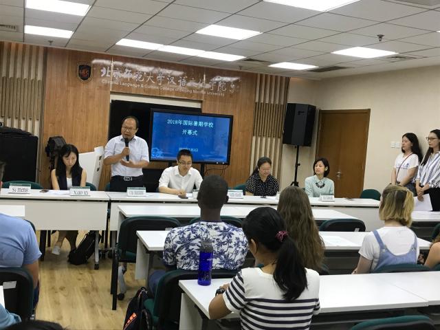 出席开营式的嘉宾有学校国际交流与合作处处长程红光、bat365中文官方网站副院长崔学刚、汉语文化学院副院长李凤林、中国教育国际交流协会主任肖蕾、爱尔兰教育市场总监Niamh Madden和汉语文化学院教授贾笑寒、国际交流与合作处司梦老师、bat365中文官方网站李婧雅老师。崔学刚副院长在发言中向各位同学的远道而来表示欢迎,并介绍了bat365的基本情况和国际暑期学校,他希望各位同学在收获知识的同时更进一步地了解中国。