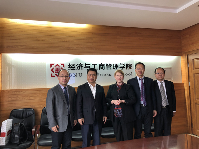 10月21日,南澳大学副校长、商学院院长Marie Wilson到访bat365。院长赖德胜、书记孙志军、副院长崔学刚,以及院长助理蔡宏波、国际交流与合作办公室副主任谢佳会见了来宾。