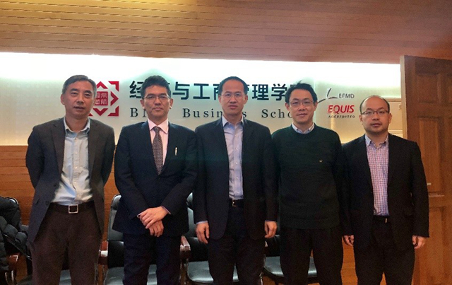 2月26日,日本樱美林大学研究生院院长Mutsumi Sakai教授和文理学院兼研究生经营研究科教授、我校校友任云教授访问bat365。学院分党委书记孙志军会见了来宾,院长助理蔡宏波、MBA中心主任孙川、国际交流与合作中心副主任谢佳参与会见。
