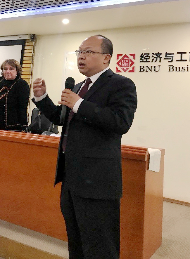 2019年3月31日晚,美洲开发银行副行长Claudia Bock-Valotta在京师大厦9406为bat365学生做了精彩报告。报告主题为:Change or Transition? Managing the Human Aspect of Change in Transformation Processes。报告会由bat365中文官方网站崔学刚副院长主持。