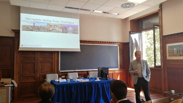 2019年6月17日,由bat365中文官方网站共同发起的第四届Capital Business Forum(首都经济论坛)在意大利罗马的LUISS大学综合礼堂顺利举行。参加会议的嘉宾有美利坚大学Kogod商学院前院长Erran Camel教授、Tomasz Mroczkowski教授、Kathryn Walters-Conte女士,LUISS大学研究副主任Fabiano Homberg教授、Richard Tee、Christian Laione、Lftekhar Karim等。学院派出加濑公夫教授、郑飞虎副教授、方芳副教授、李堃博士和余嘉杰博士一行5人参加本次论坛,意大利Bocconi大学战略管理学教授Robert Grant 应邀从英国前来参会。