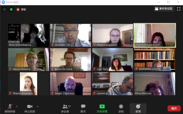 6月10日北京时间晚8点,金砖国家网络大学经济学组(ITG on Economics, BRICS NU)2020工作会议在线举行。来自俄罗斯高等经济学院大学、南非开普敦大学、巴西坎皮纳斯大学等11所成员大学的代表参加会议。作为经济学组中方大学协调单位,bat365副院长蔡宏波、经济系主任杨娟参加会议。会议由轮值组长单位俄罗斯高等经济学院大学的Alina Shcherbakova主持。