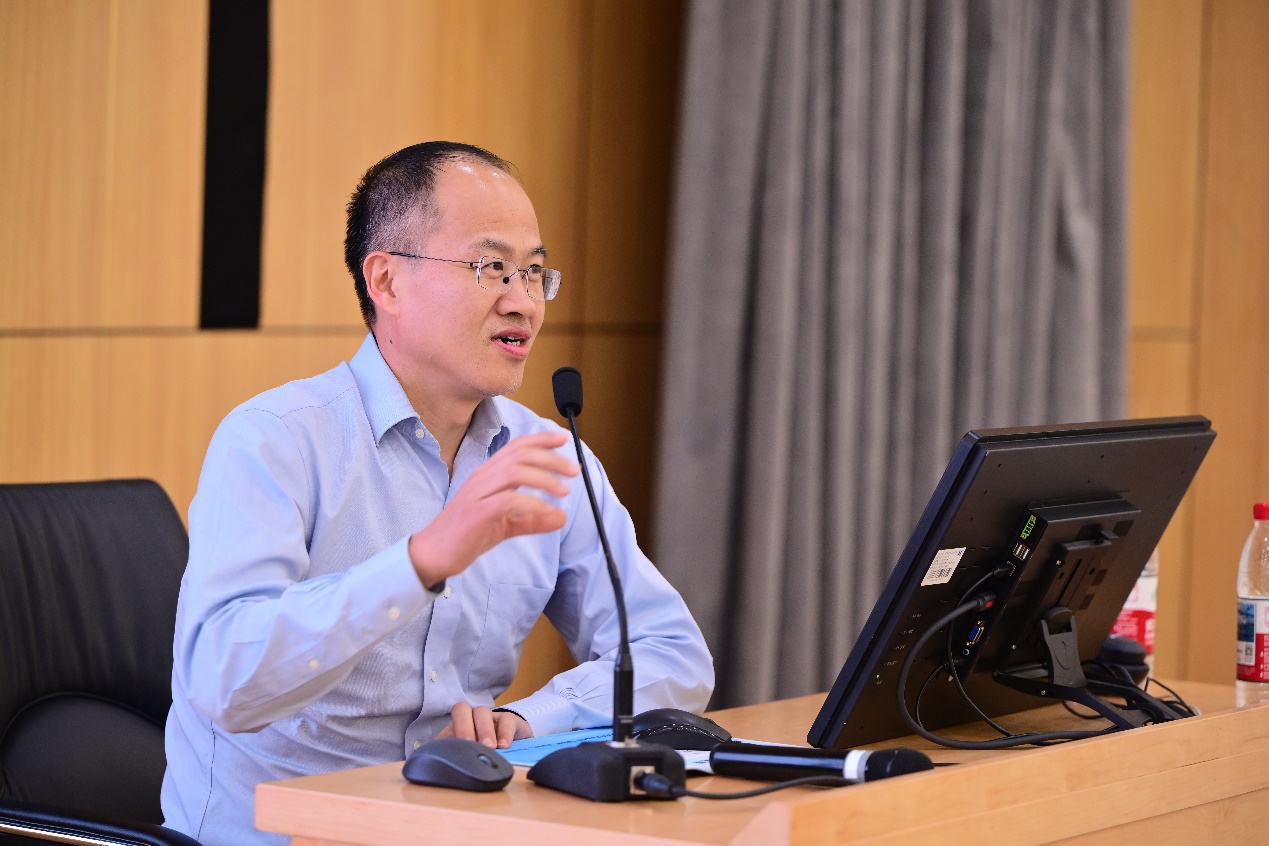 学院党委书记孙志军讲授“开学第一课”。孙老师首先带领大家回望了学院四十余年来的光辉足迹,指出学院机构与学科变革发展深深嵌入我国经济社会体制改革的广阔背景中。随后,他详细介绍了学院构建的多元化、高层次人才培养架构,强调了学院致力于培养具备深厚的人文与科学素养、开阔的国际视野、强烈的社会责任感和“四有”素养人才的育人理念,并从课程质量、国际化交流、课外活动、教师指导等八个方面详细介绍了践行理念的具体举措。最后,他结合学院使命、愿景和价值观,阐释了学院文化和精神气质,鼓励同学们争做“国之大者、为国为民”的新时代经管人。