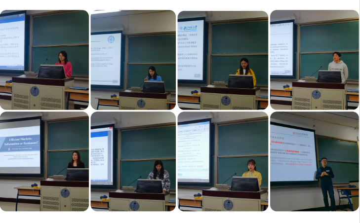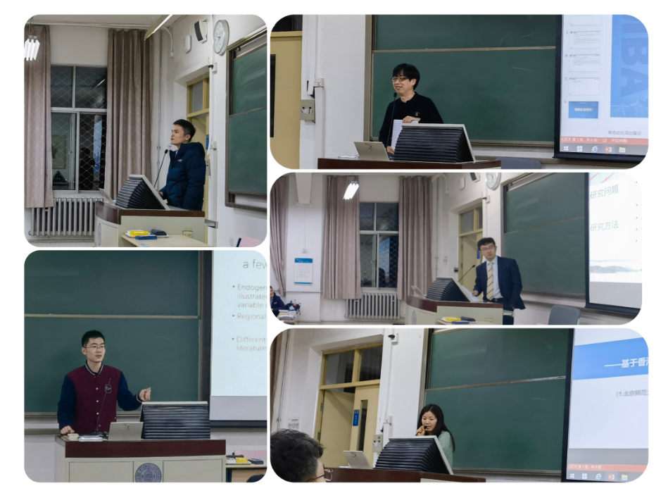 经济论坛在教二101进行,本届经济论坛投稿31篇,论坛展示为8篇,出席的专家有杨澄宇教授(专家组组长)、党委副书记韩丽丽老师、向虹宇老师、徐立成老师、高晶晶老师,主持人为2020级博士生郭睿。每一位展示的同学都做了详尽的论文汇报,专家对发言的同学做了真诚、精准、幽默、精彩的点评,尤其是杨澄宇老师讲故事点评的方式,将论坛推向了高潮,在欢声笑语中落下了帷幕。最后,专家为报告同学们颁奖并合影。