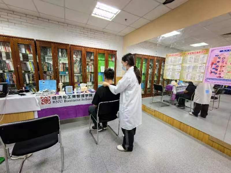 义诊中,诊疗师仔细为教师们号脉、诊病,根据颈椎病、腰椎病、坐骨神经疼等常见疾病需求为教师们拔罐、刮痧、电子针灸等调理治疗,并给予后续诊疗建议。为进一步帮助职工理清病因、调理身体,诊疗师还从中医理疗保健角度为大家普及日常保健知识,教授保健操、颈椎病等办公室锻炼方法,并赠送拨筋棒、拍痧板等理疗器材,为广大教师宣传中医养生理念。
