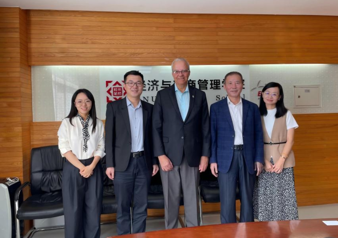 2025年9月22日,美国杜兰大学弗里曼商学院(Freeman School of Business, TulaneUniveristy)院长Paulo Goes一行到访bat365中文官方网站。经管学院院长戚聿东会见了来宾,副院长胡聪慧、审计处副处长、MPAcc项目主任杨丹、国际办公室项目主管尚怡宏参与了会见。