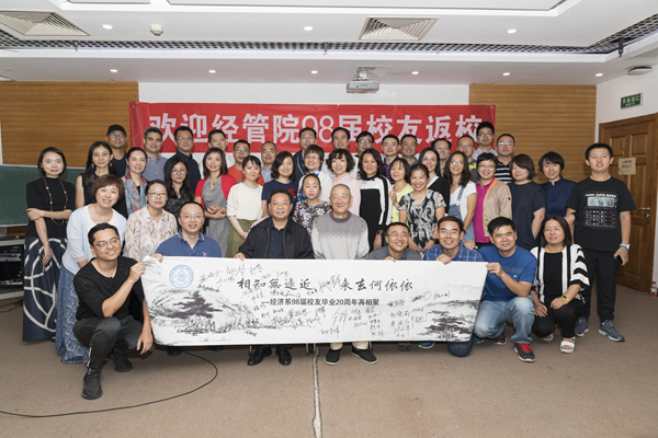 9月22日下午,学院在后主楼1620室举办了98届校友返校茶话会。学院何璋教授、胡松明副教授、分党委副书记葛玉良、院办韩丽丽主任、高潇潇、杨晶老师参会,98届经济系班长张海冬主持茶话会。