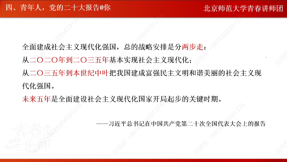 首先,张思原同学以“学习二十大 永远跟党走 奋进新征程”为题,带领大家深入学习领会党的二十大报告精神。她从党的二十大报告主题、报告结构、“数”说二十大等方面带领大家学习了党的二十大报告中的新观点、新论断、新思想,创新性的形式也使同学们更加深刻地掌握党的二十大报告的主要内容和核心思想。