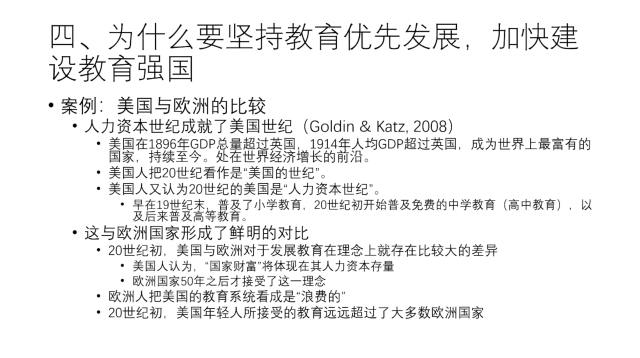 接着,孙老师结合丰富资料,向大家介绍了“坚持教育优先发展、加快建设教育强国”的由来、内涵及现实意义。他指出,改革开放以来,我国教育目标经历了从教育大国到教育强国、从人口大国到人力资源强国的转变,“教育优先发展”的内涵越来越丰富。他结合经济学理论与案例,强调了教育对积累人力资本、促进技术进步、推进经济增长的重要作用。