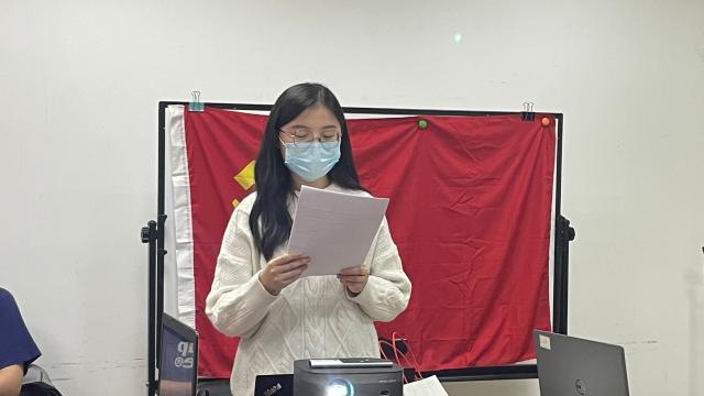 会议开始,全体党员起立,面向党旗齐唱《国际歌》。支部首先讨论预备党员李彤同志的转正事宜。李彤同志在党旗下宣读了转正申请书,汇报了自己在预备期间的党性思想、学生工作、学业表现和生活情况四个方面取得的进步和存在的缺点。组织委员郭川东同志介绍了李彤同志在预备期间的表现及教育、考察情况并提交支部大会讨论。与会党员充分讨论李彤同志的优缺点并对其能否按期转正表明意见。大会认为李彤同志成绩优异,认真完成学生工作,生活中乐于助人,群众基础良好,希望未来能加强政治理论学习,提高理论修养,发挥好党员的先锋模范作用。与会支部正式党员采用无记名投票的方式对是否同意李彤同志按期转正进行表决。支部书记郭睿同志宣读票决情况和支部大会决议,同意李彤同志按期转正。李彤同志发表了自己的感想,她感谢党组织的培养与党员的帮助,并表示未来将继续深入学习,争做一名优秀的共产党员。