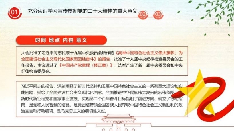 首先,赵新宇强调了学习宣传贯彻党的二十大精神的重大意义。她通过介绍党的二十大的内容以和意义,让支部成员们认识到学习宣传贯彻党的二十大精神是当前和今后一个时期全党全国的首要政治任务,事关党和国家事业继往开来,事关中国特色社会主义前途命运,事关中华民族伟大复兴,对于动员全党全国各族人民更加紧密地团结在以习近平同志为核心的党中央周围,高举中国特色社会主义伟大旗帜,坚定道路自信、理论自信、制度自信、文化自信,为全面建设社会主义现代化国家、全面推进中华民族伟大复兴而团结奋斗,具有重大现实意义和深远历史意义。