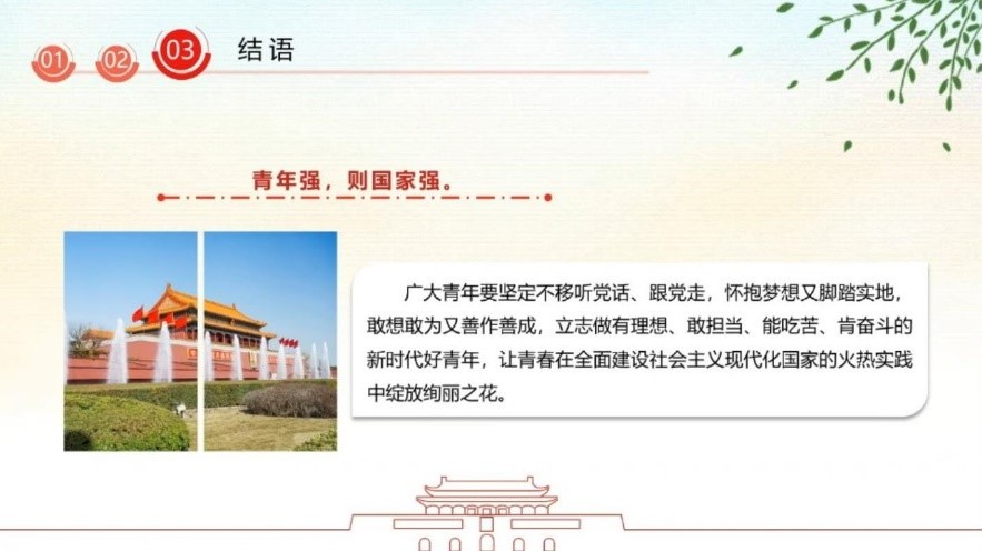 最后,她摘录了习近平总书记在报告中对青年的表述,鼓励大家牢记习近平总书记的嘱托,为实现第二个百年奋斗目标贡献出自己的一份力量。
