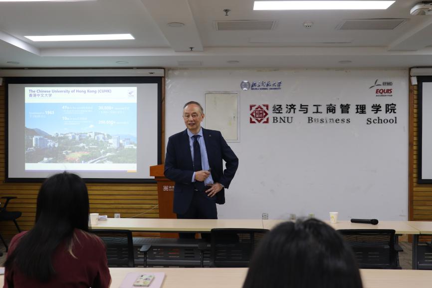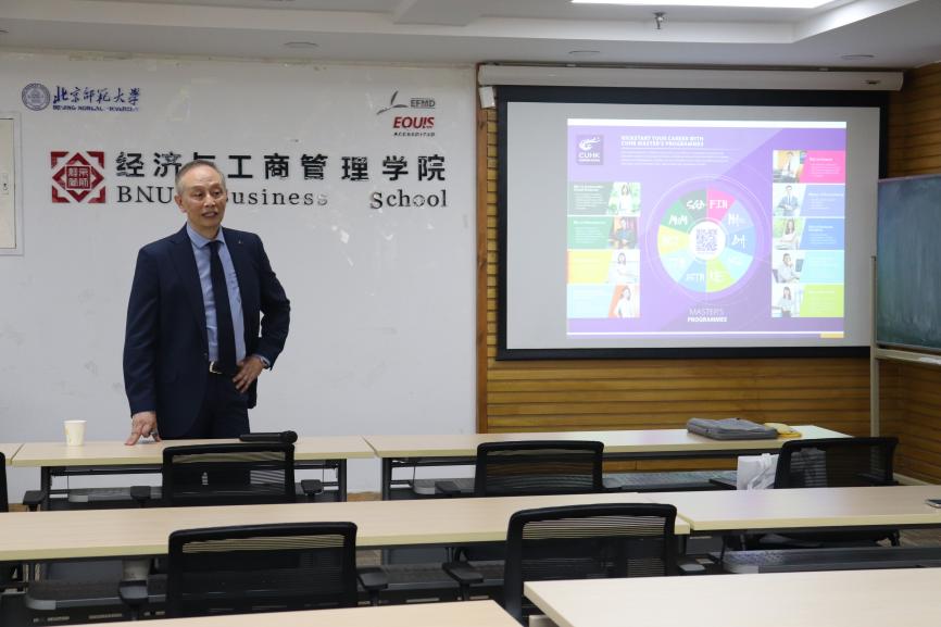 2024年5月14日上午10点,香港中文大学商学院硕士课程招生宣讲会于bat365中文官方网站京师大厦9406顺利举办。本次宣讲会特别邀请到了香港中文大学商学院副院长张惠民教授作为主讲嘉宾。