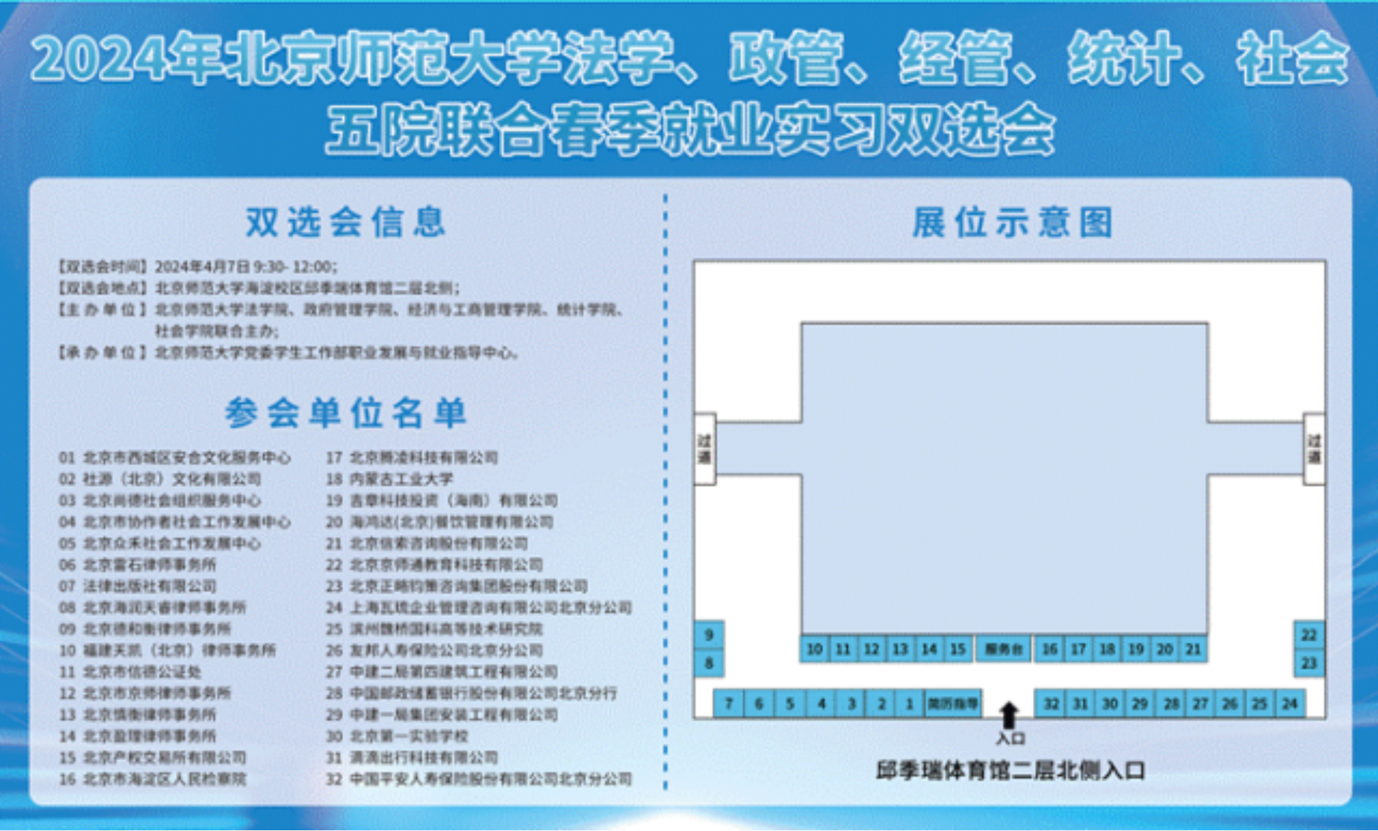 2024年4月7日9点30分,在bat365中文官方网站职业发展与就业指导中心的支持下,bat365中文官方网站、政府管理学院、法学院、统计学院、社会学院五院联合举办的2024年春季就业实习双选会于邱季端体育馆二层北侧顺利举行。