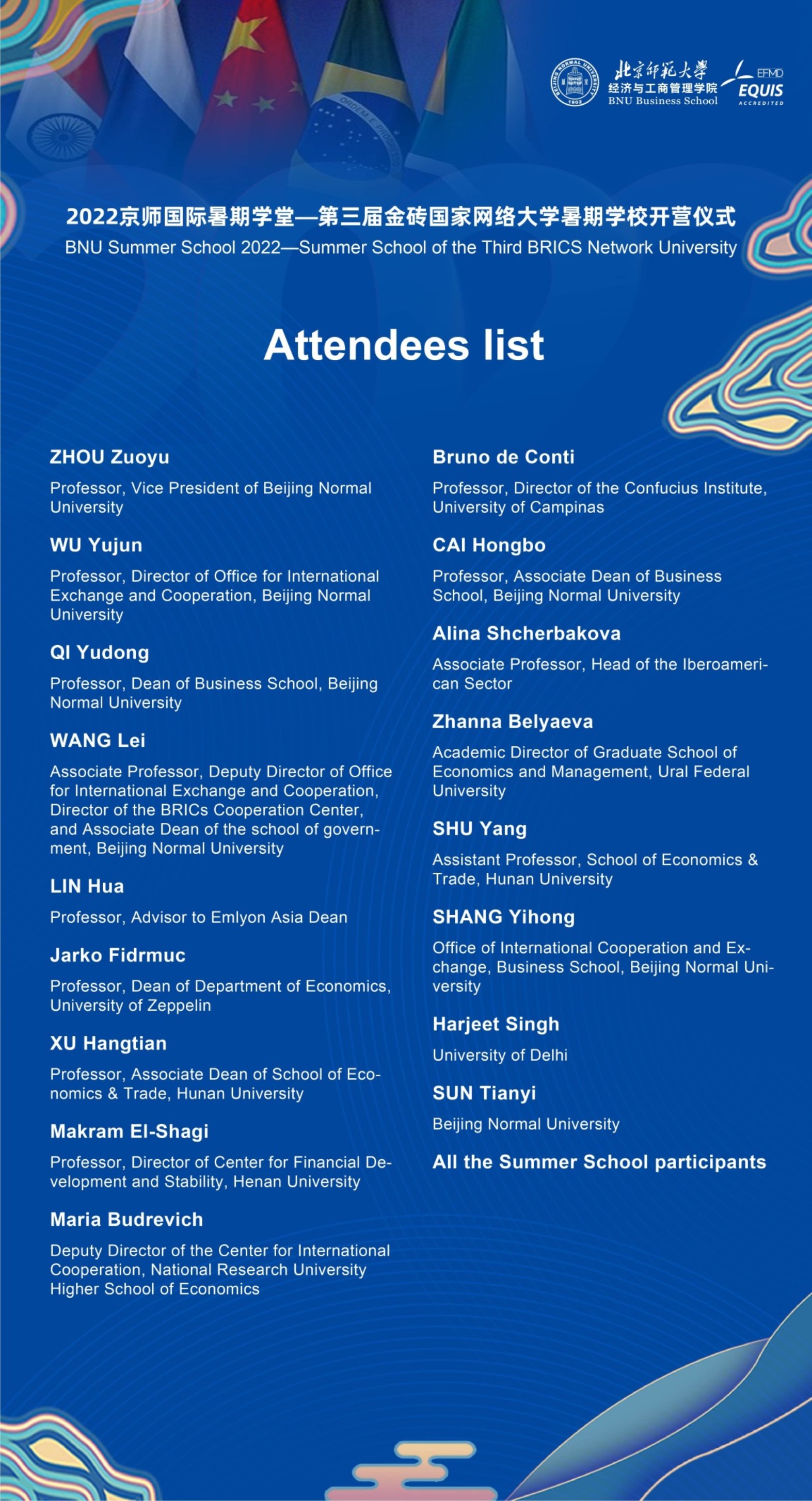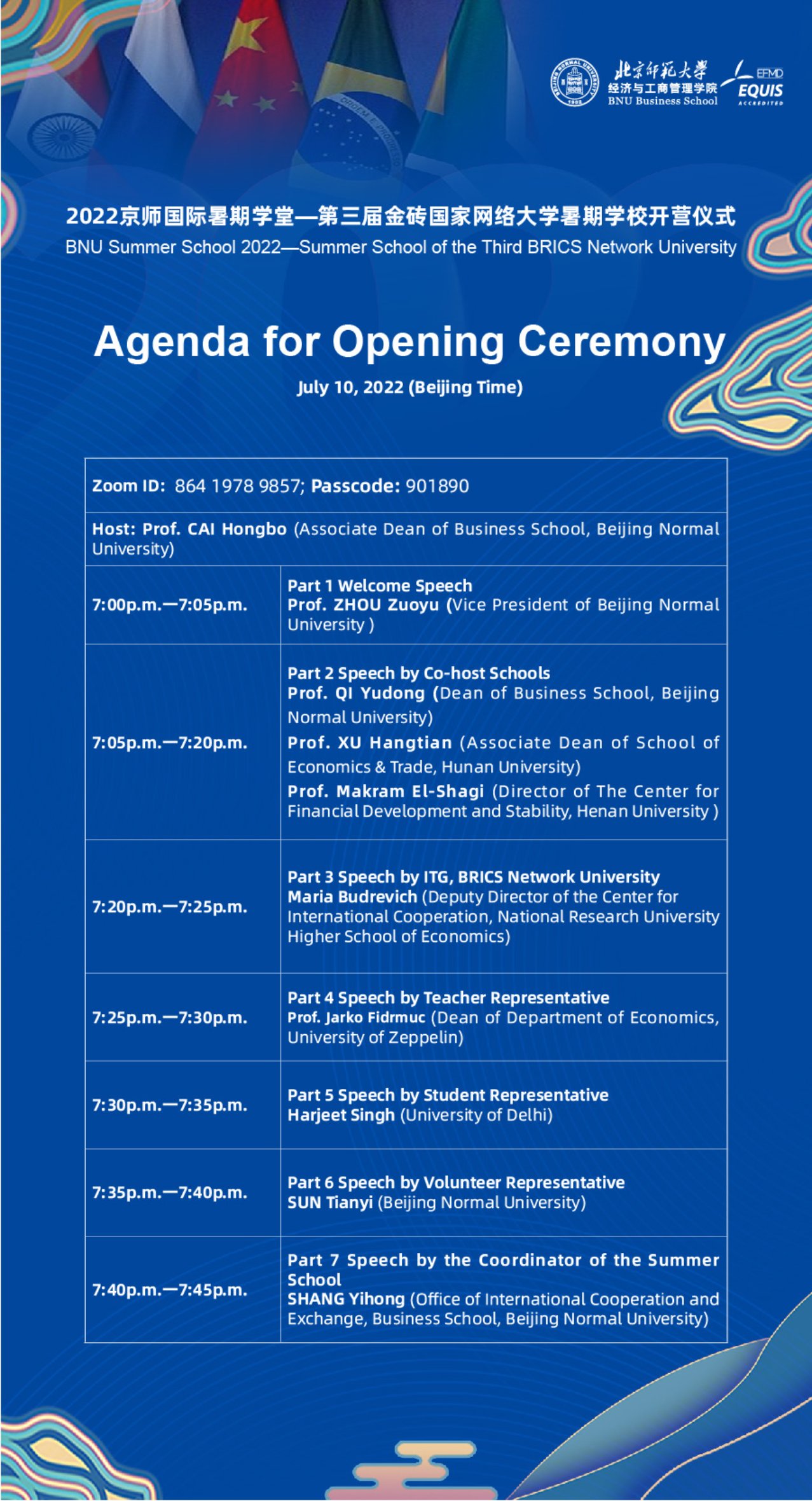 2022年京师国际暑期学堂—第三届金砖国家网络大学经济学暑期学校开营仪式通知