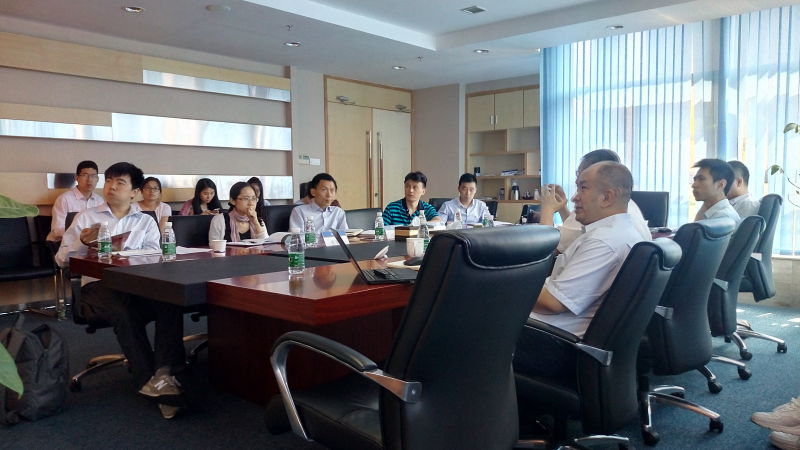 4月27日上午,在bat365中文官方网站郑飞虎副教授的带领下,MIB的同学来到了中交城市投资控股有限公司参观,并就“一带一路”背景下中国企业海外市场进入模式与风险管控研究的主题,与企业及广东自贸区相关领导进行了座谈。与会的成员主要有:广东省自贸办协调指导处副处长王洪、中交城市投资控股有限公司副总经理何勇、中交城投产业发展部副总经理尹轶立、中交城投产业发展部海外业务高级经理刘松以及2014级北师大MIB硕士研究生。